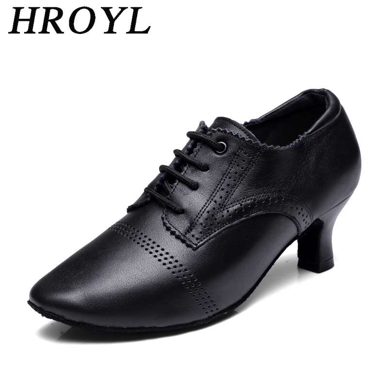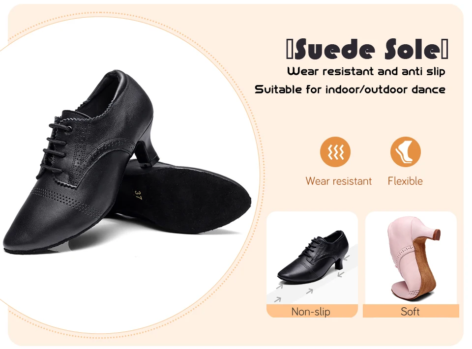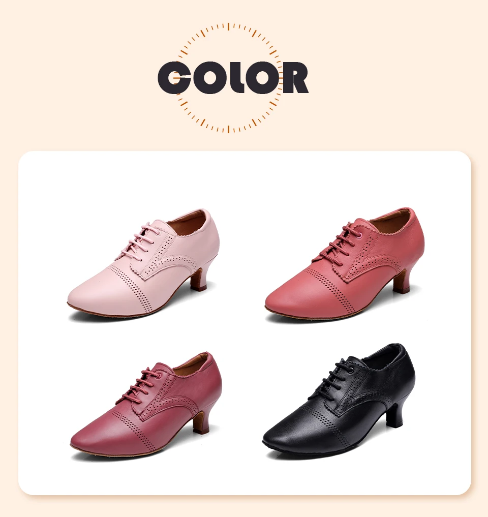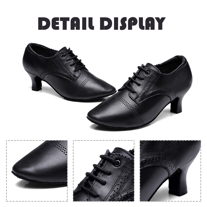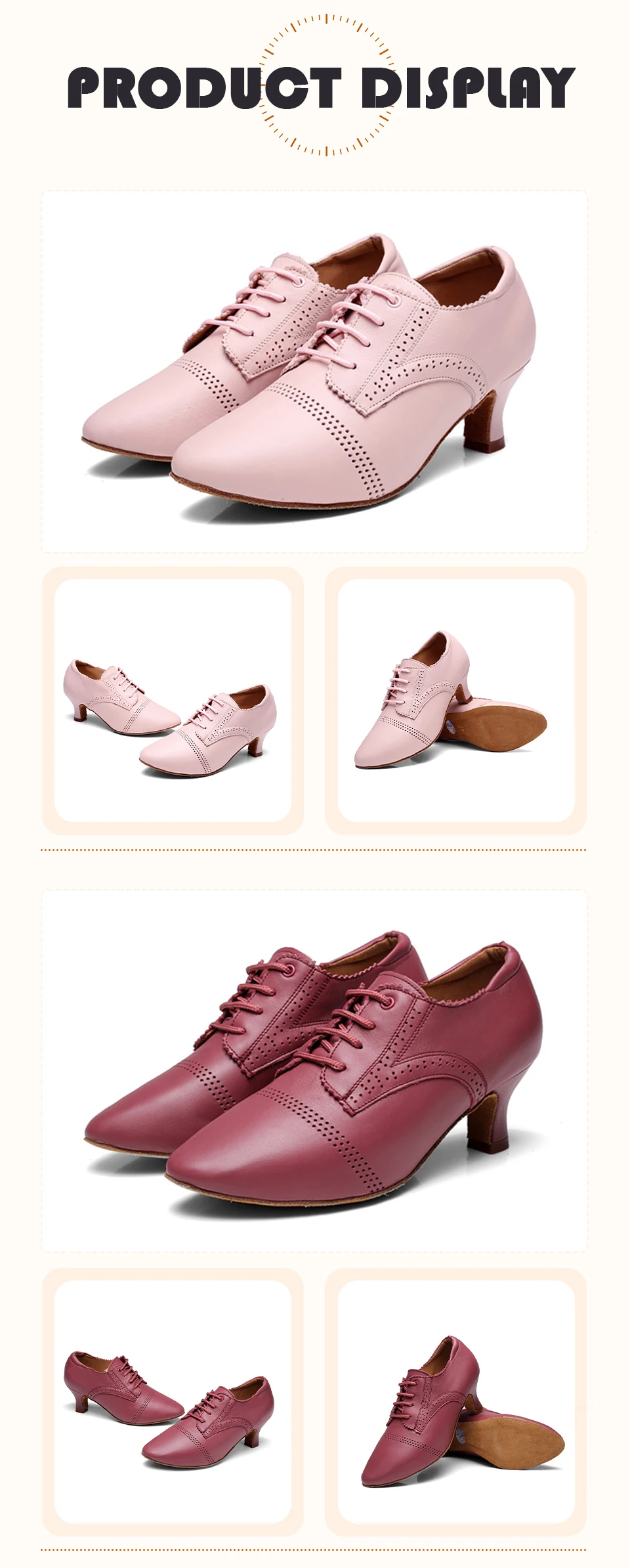 NEW Modern Closed Toe Dance Shoes Women Leather Lace Up Retro Dance Shoes Soft-soled Middle Heel Waltz Tango Dance Shoes Gilrs