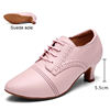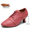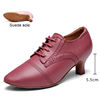 NEW Modern Closed Toe Dance Shoes Women Leather Lace Up Retro Dance Shoes Soft-soled Middle Heel Waltz Tango Dance Shoes Gilrs