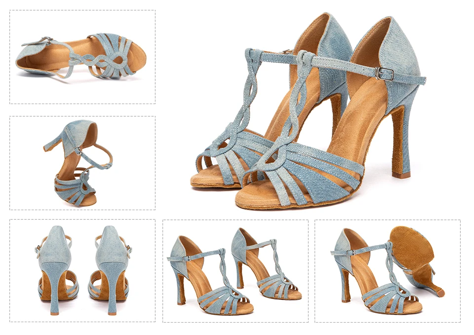 New Sexy stilettos High Heels DENIM Women Latin dance heels Shoes High-Top Dance Sandals for Women Latin Ballroom Dancing Shoes