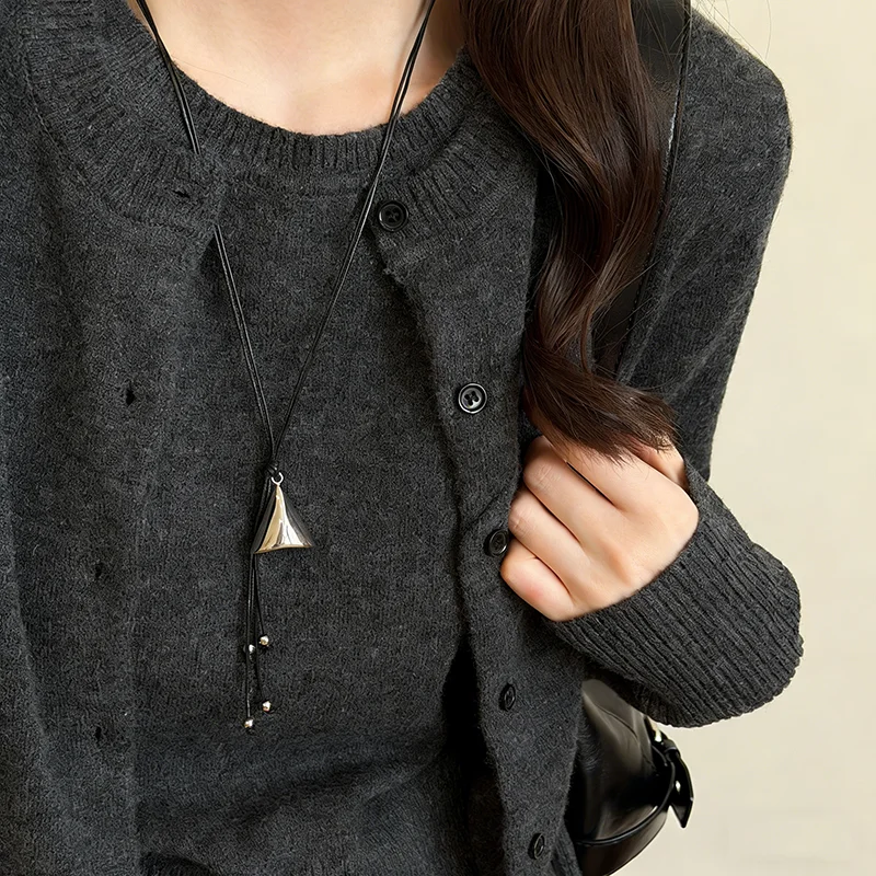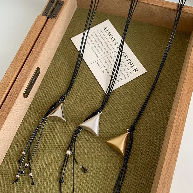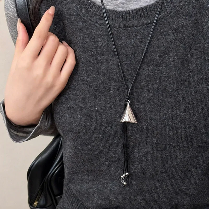 New Simple Silver Triangle Pendant Tassel Necklace for Women Autumn Winter Long Pull Sweater Chain Charm Jewerly Daily Accessory