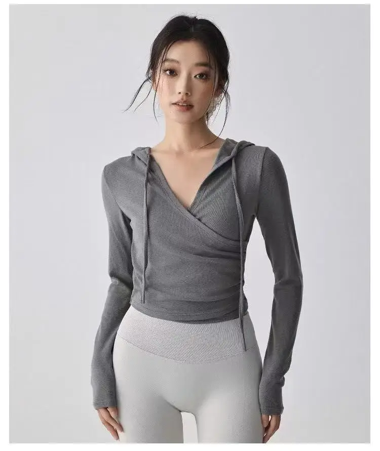New V-neck Slim Bodysuit Wears Fitness Clothes Running Yoga Long-sleeved Slimming Fast-drying Sports T-shirt for Women Clothing