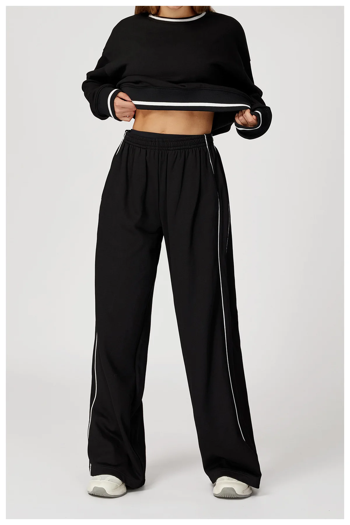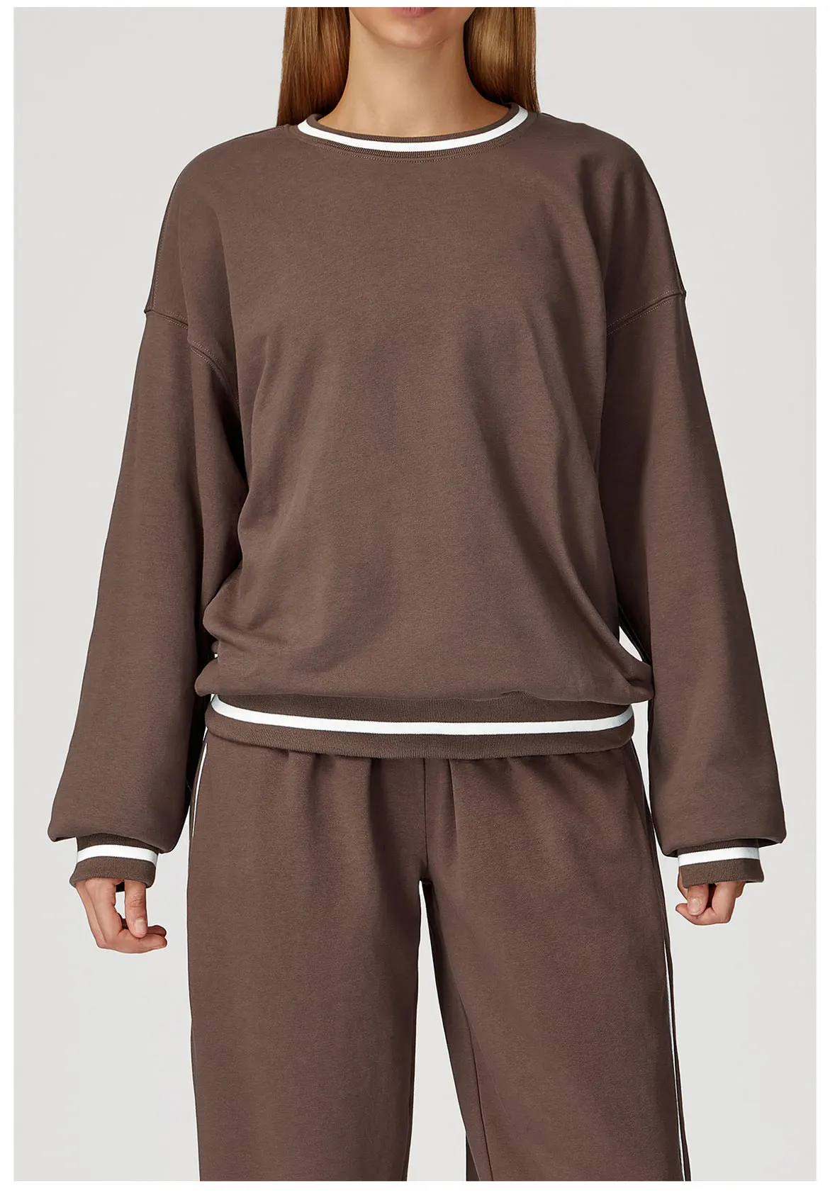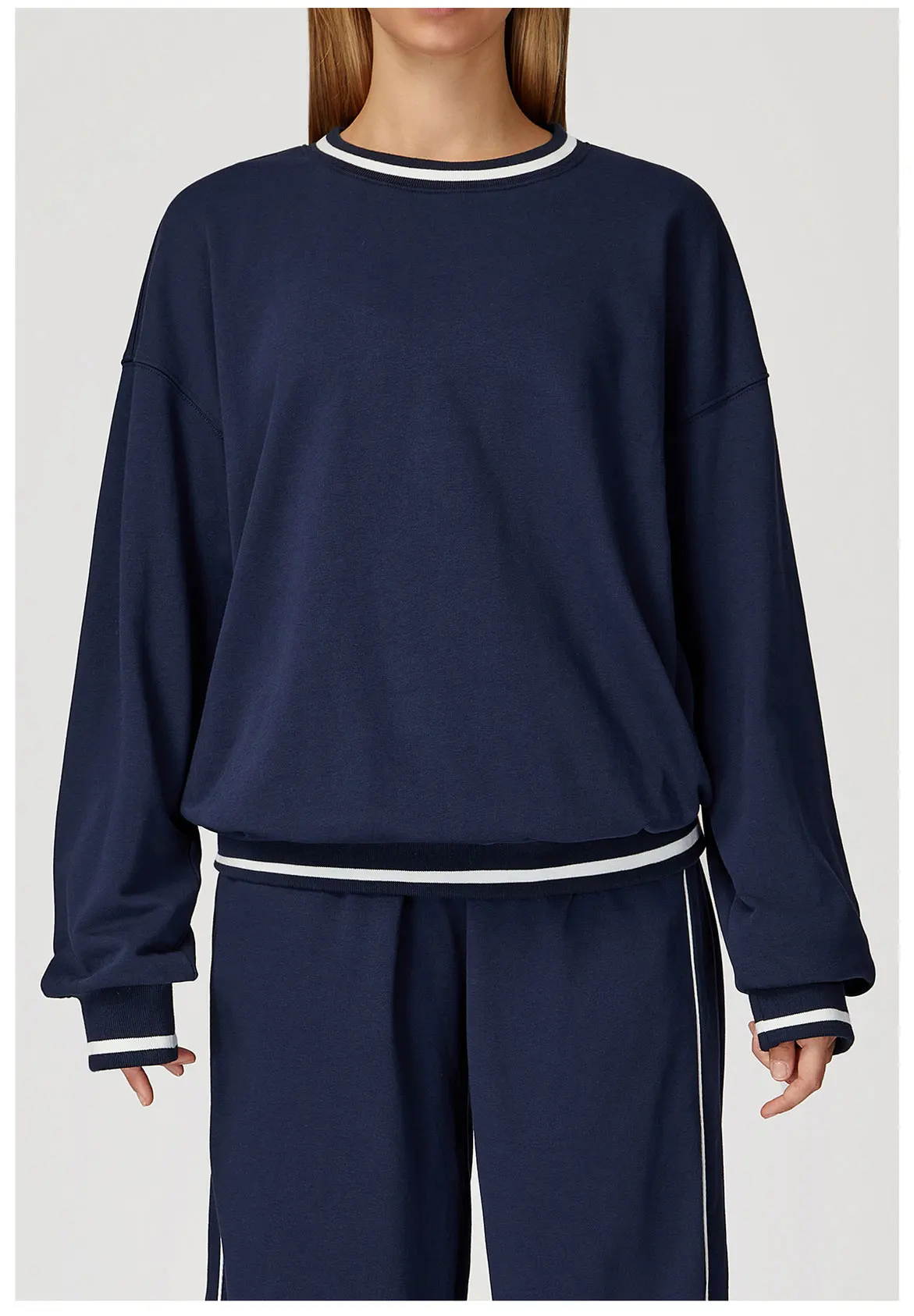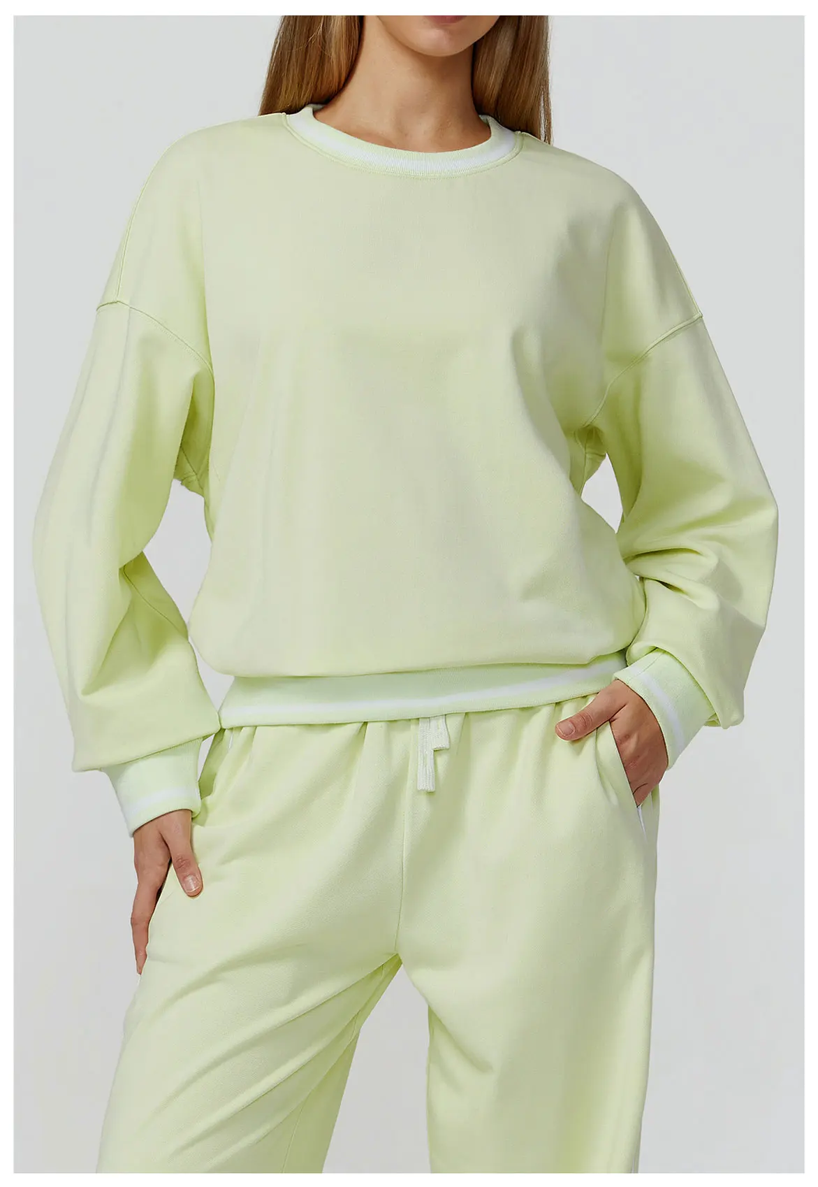 New Winter Color Blocking Hoodie Women Long Sleeved Loose Round Neck Top Fashionable Hoodie Outdoor Casual Running Sports Top