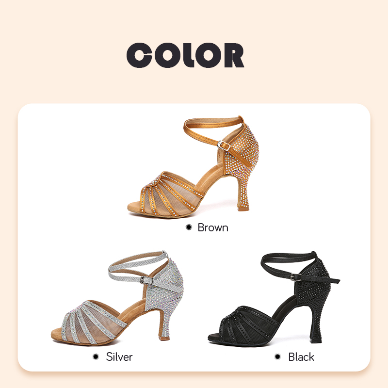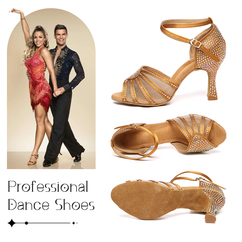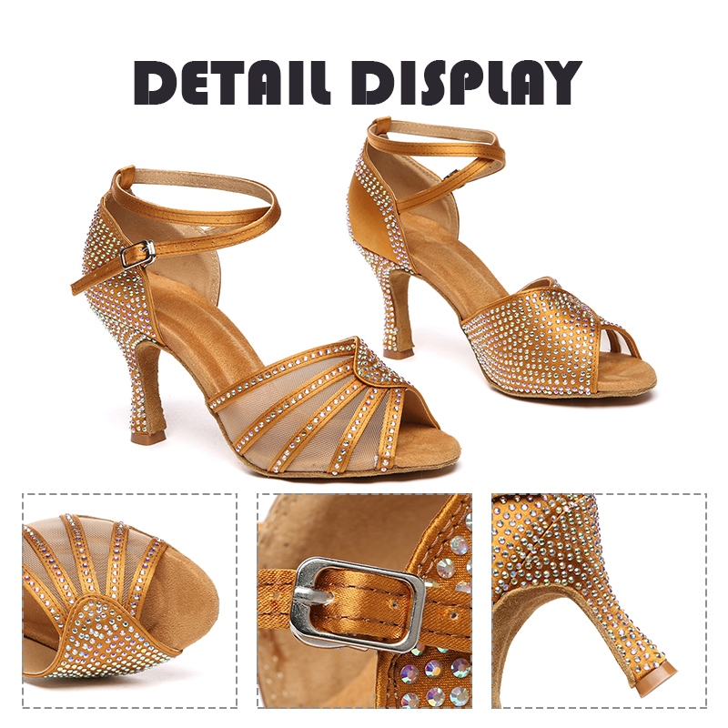 NEW Women Latin Dance Shoes Rhinestones Mesh Dancing shoes for Ladies Girls High heels Salsa Sandals Tango Ballroom Dance Shoes