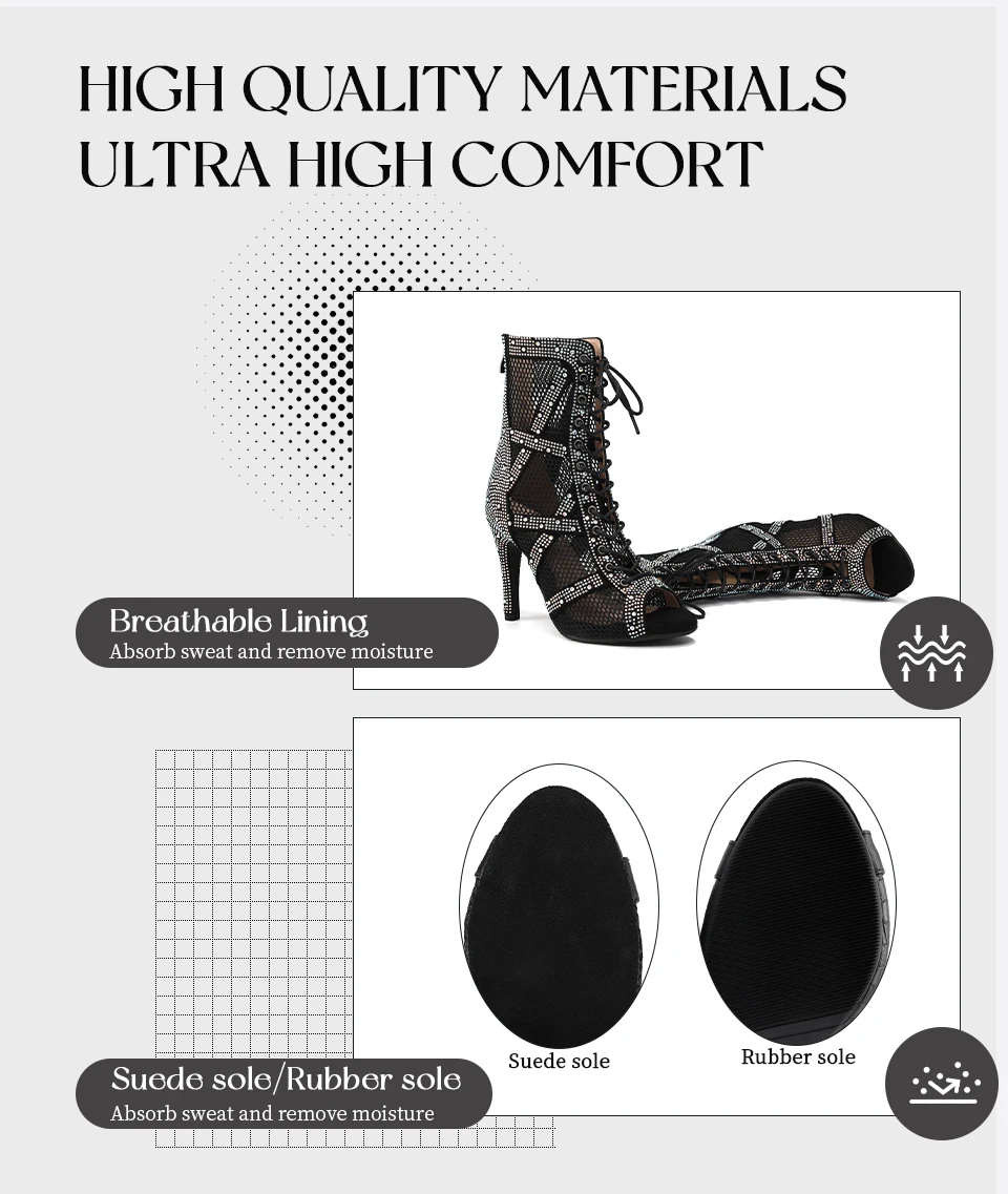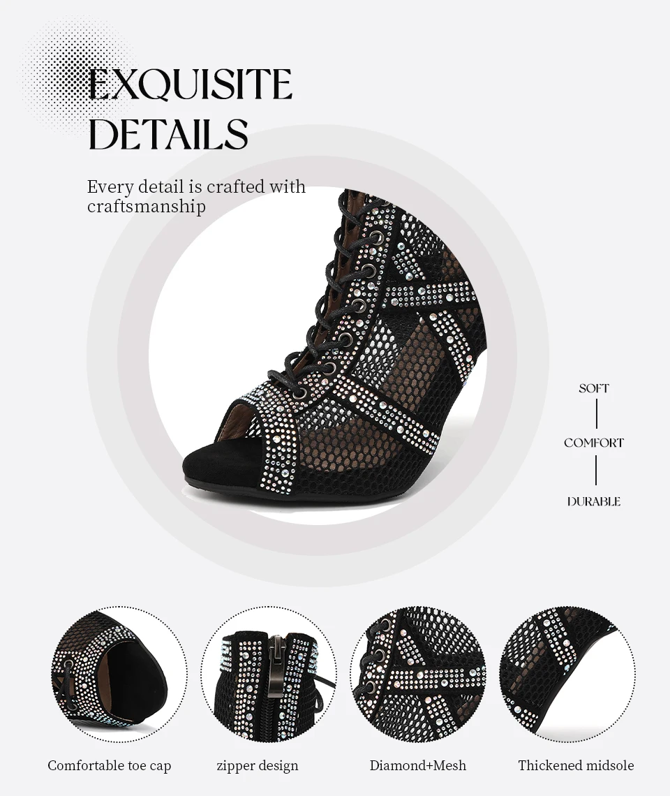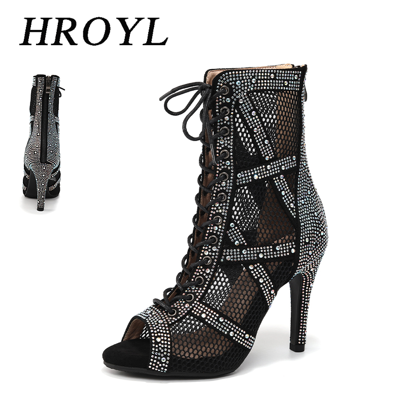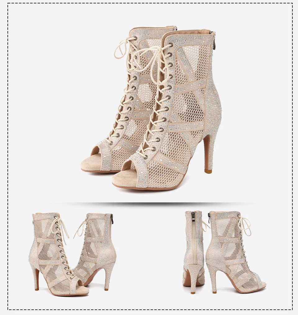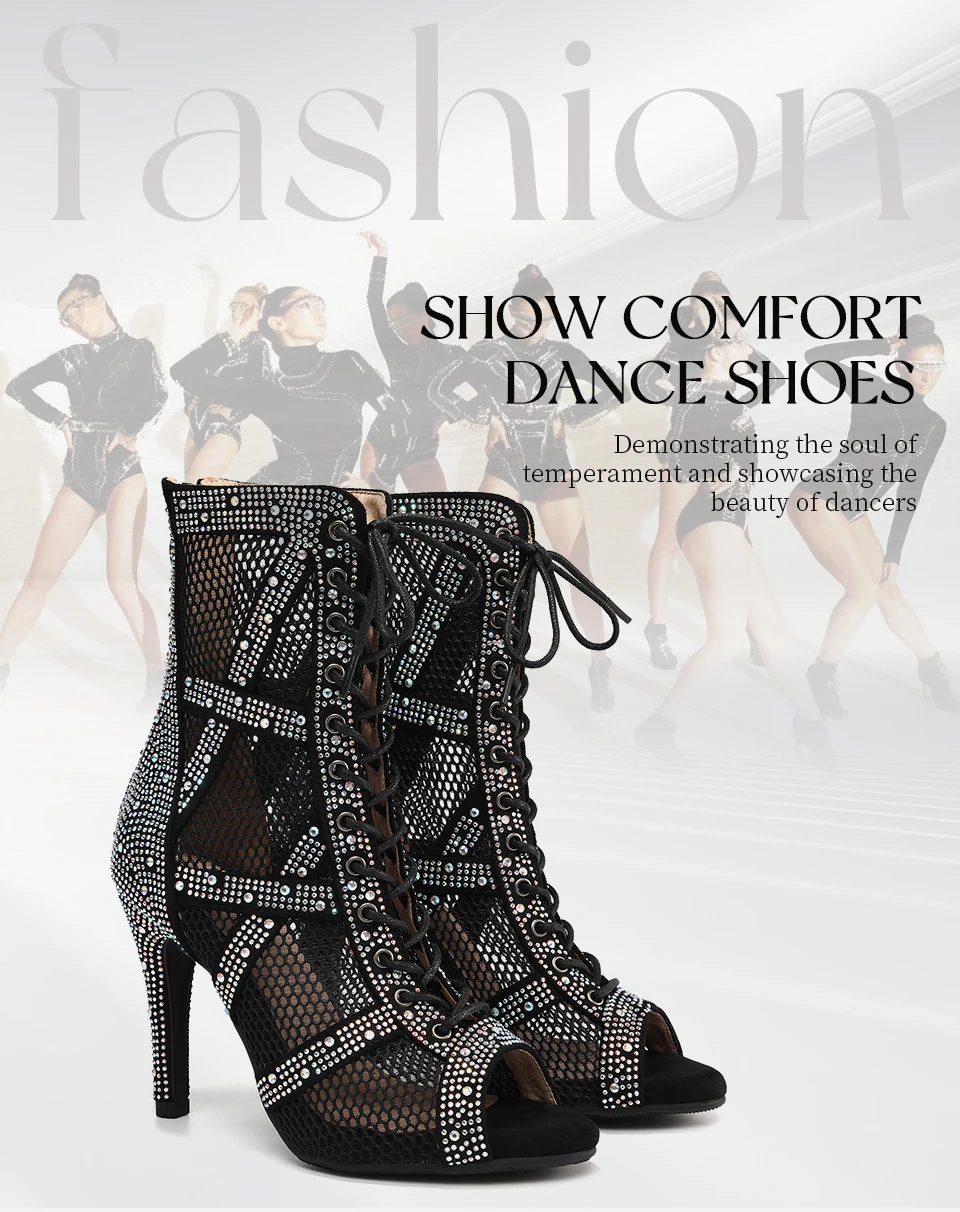 New Women Rhinestone Dance Shoes Ballroom Salsa Party Jazz Latin Dance Booties For Women/Ladies Stiletto High Heels 7-11cm
