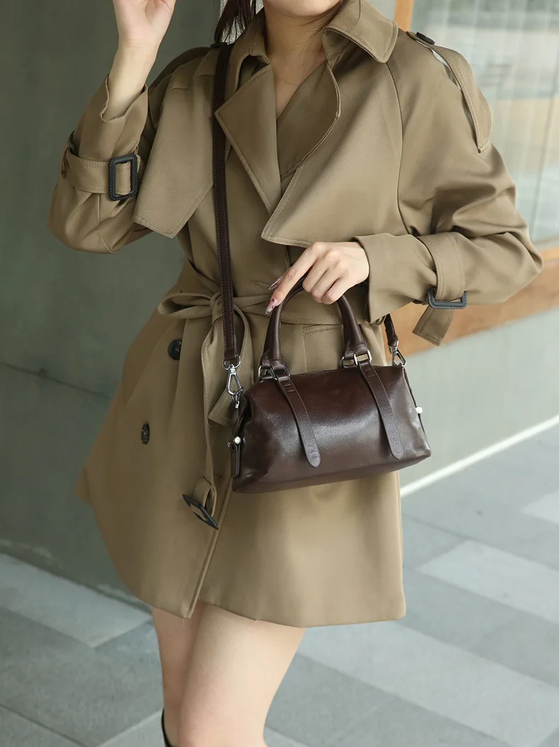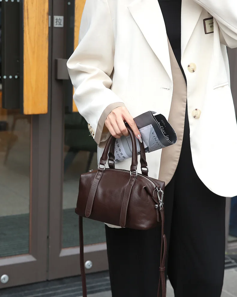 New Women’s Handbag Commuting Genuine Leather Crossbody Bag Female Luxury Cowhide Vintage Daily Shoulder Boston Bag as gift