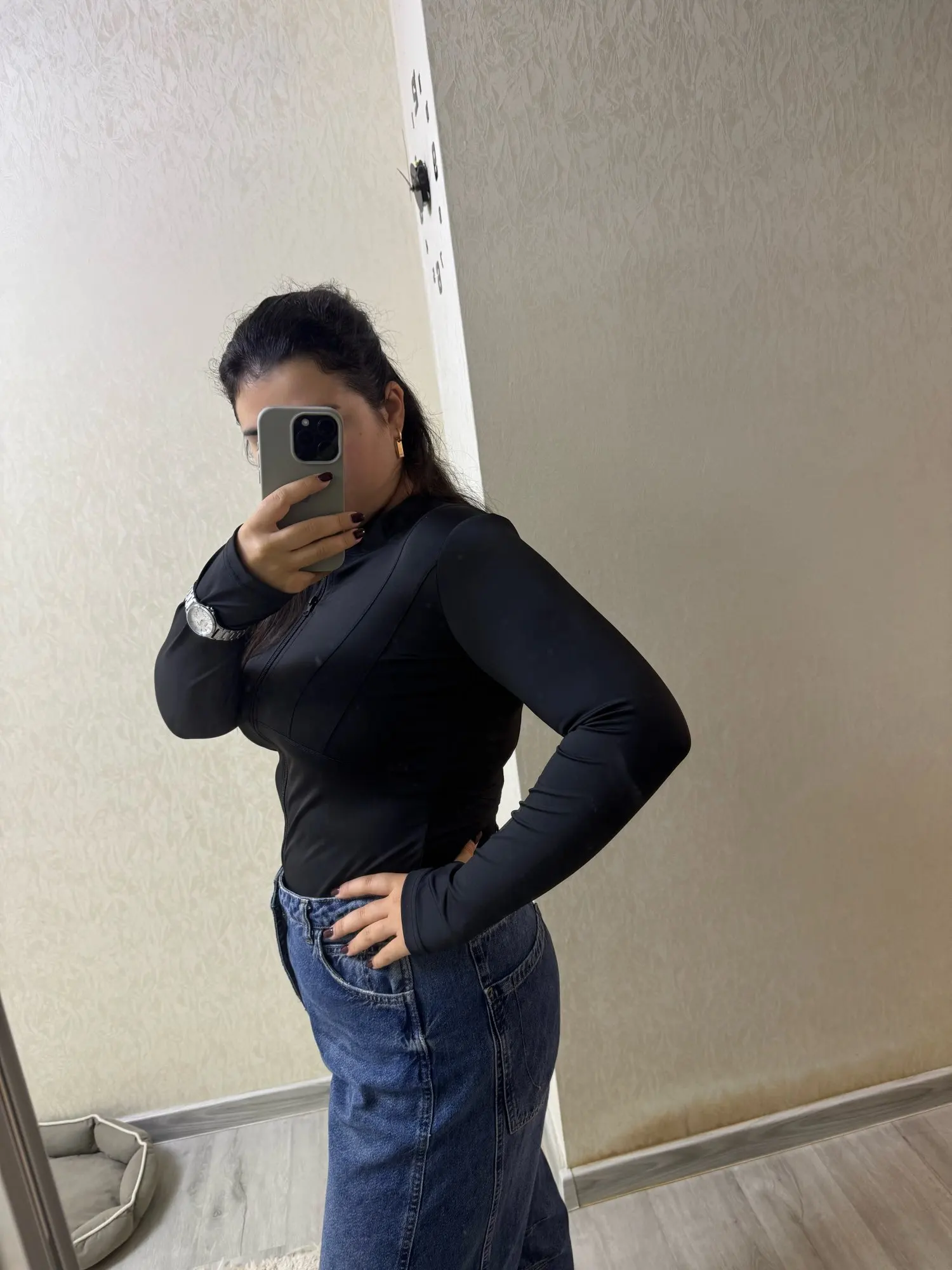 I don't usually write reviews, but this time I need to. Girls with large breasts who worry about being small should look at this size. My weight is 80 kg, measurements are: bust: 105, waist: 84. The jacket is tight but loose-fitting. I don't know how to explain it, but if you're 10 kilograms heavier, you'll still fit in it anyway. The fabric stretches a lot. Also, I have big biceps and the jacket has reduced them very noticeably. I like it, and also + if you wear it without a bust, it holds up just like mine does. Finally, I have ears on my back. I thought I'd be like a caterpillar, but no, everything is fine.