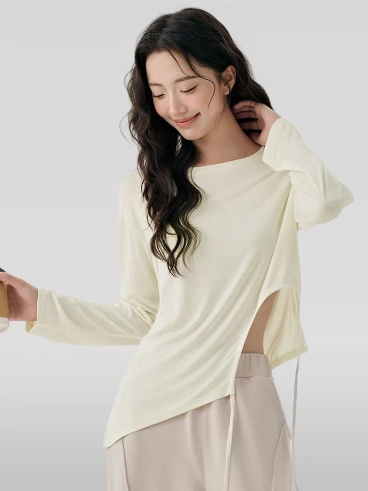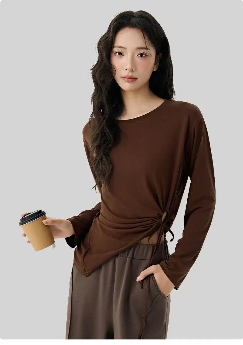 New Yoga Suit Long Sleeve Drawstring Waist Slimming Sports T-shirt Pilates Outer Wearing Fitness Sports Training Gym Top Suit