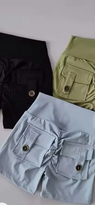 Nude High Waist Peach Hip Seamless Fitness Shorts with Pockets Women’s Tight Sports Running Training Dance Hip Lifting Pants