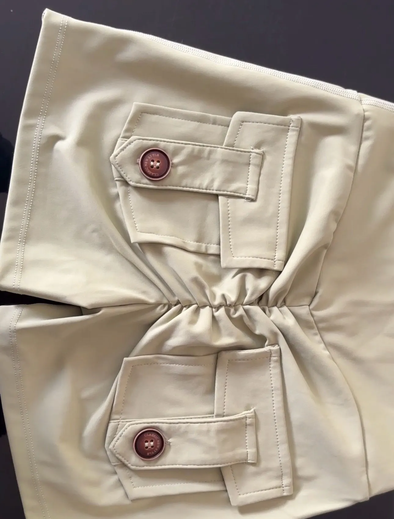 normal shorts... got them with a big discount... the size fits... sewn well... no threads sticking out......