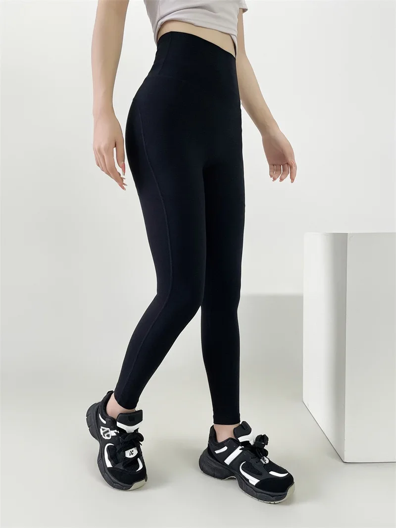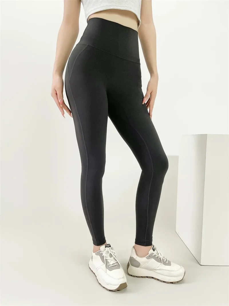 Nude Yoga Leggings Women High Waist One-piece Fitness Wear-free Underwear Belt Pocket Sports Pilates Trousers Fitness Pants