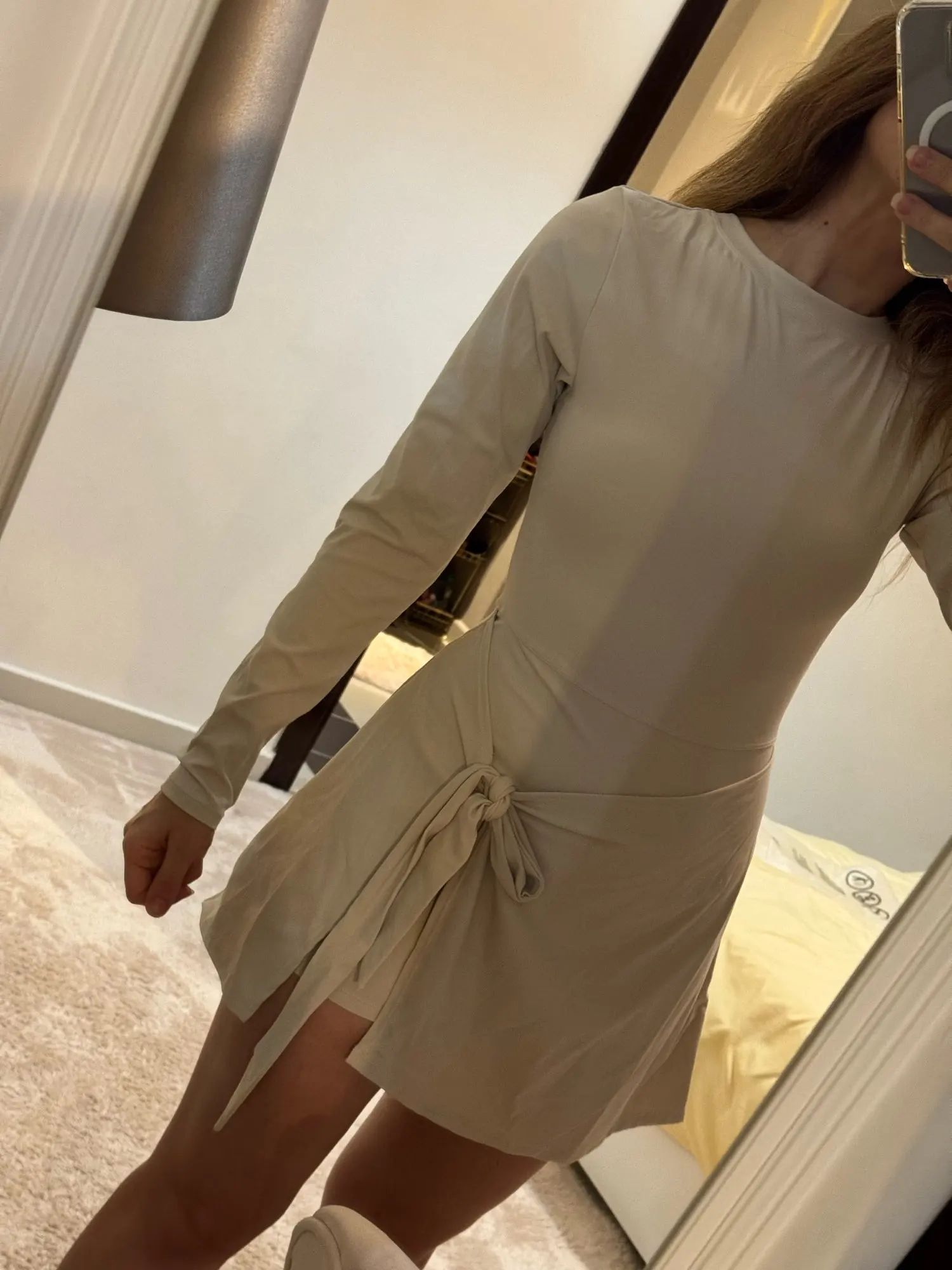 Style is exactly as seen in pictures, fabric quality is quite good. It is actually a jumpsuit with wrap skirt layering. I ordered size l ,thinking chinese patterns could be small.for 164 cm 54 kg, bottom fits perfect in size l but top part , especially neck and shoulders are too loose . A size m could fit better. Shipment arrived within 10 days to dubai.