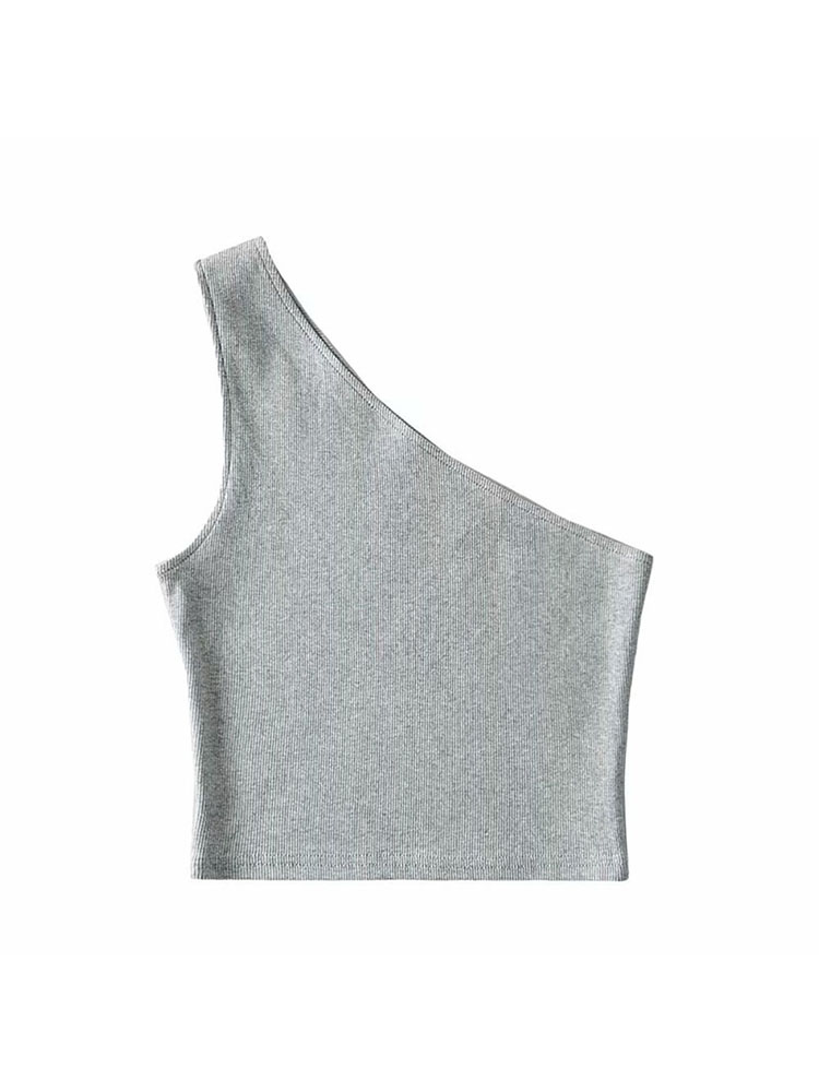 One Shoulder Cropped Tanks Top Women Summer Sleeveless Tanks Camis Sexy Oblique Collar Elastic Corset Slim Crop Tops Tube Lady
