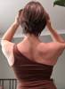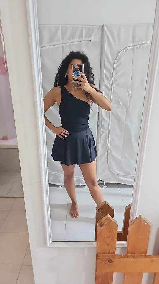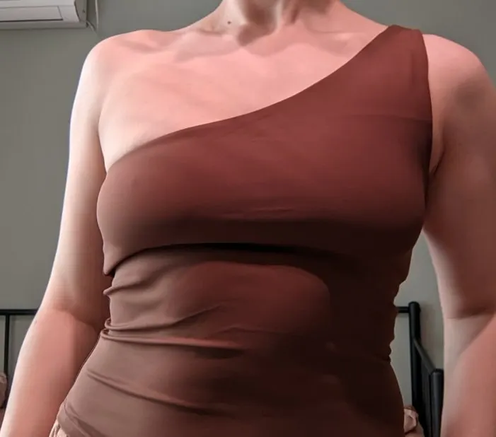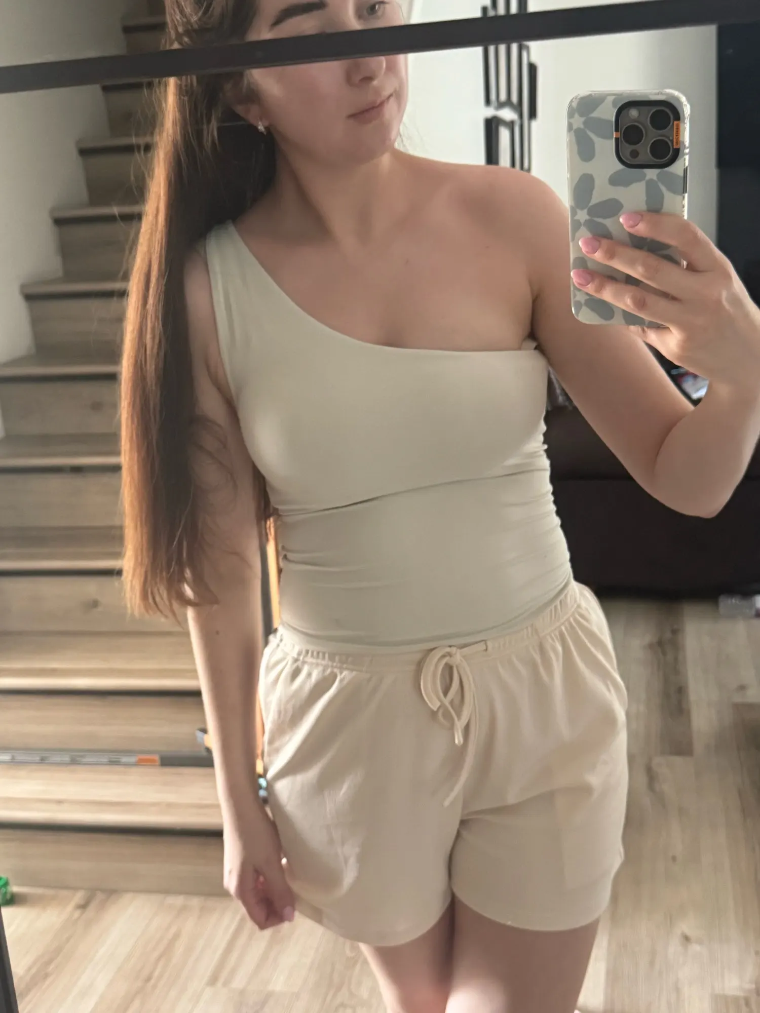 A top of good quality made of very dense material. There are built-in cups inside, they are removable. The color is cream, more towards a gray tone. In white, I think it would be better. But overall, for vacation, it's what's needed.