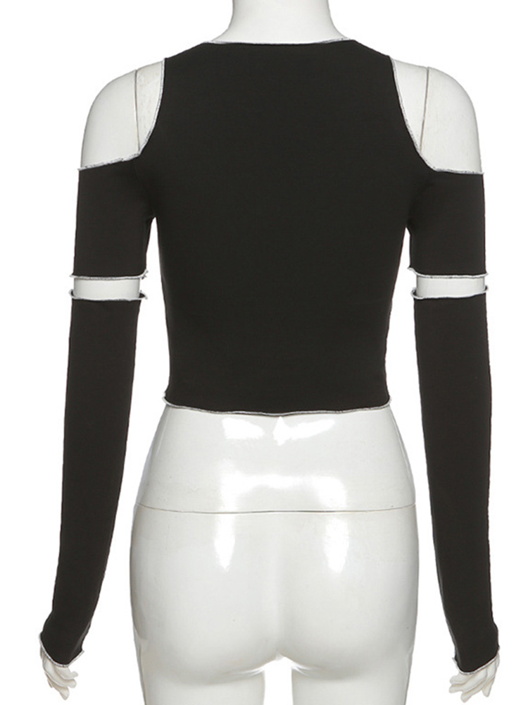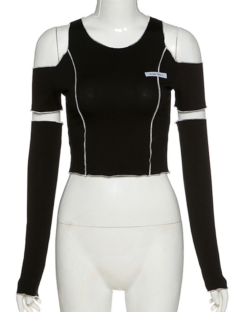Patchwork Black T-shirts Gothic One Shoulder Sleeve Y2k Crop Tops Ruffles Hem Hip Hop Techwear Women Tees