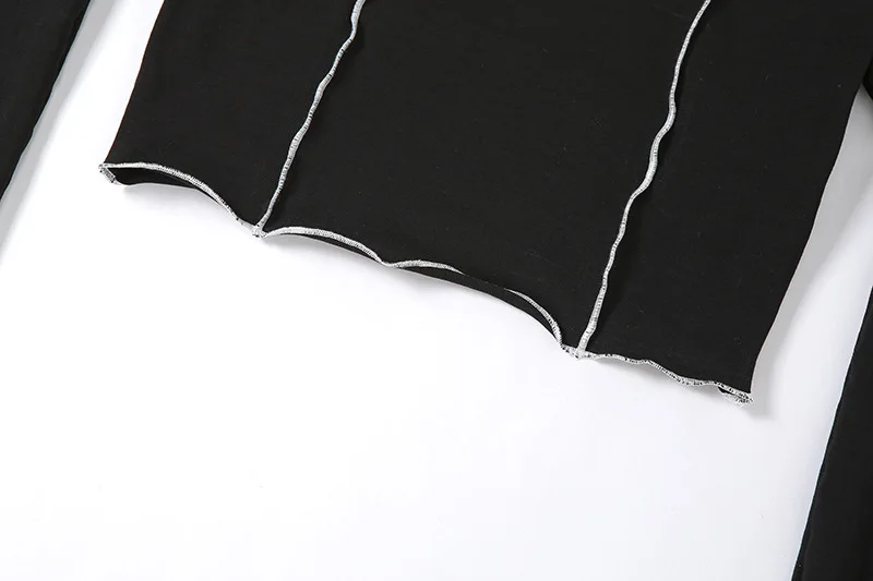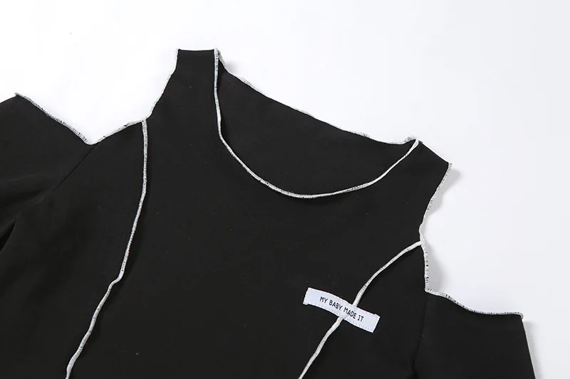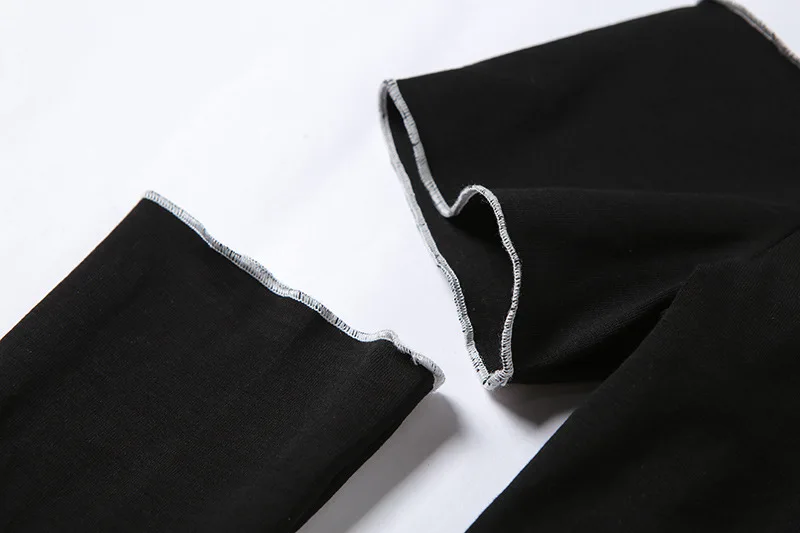 Patchwork Black T-shirts Gothic One Shoulder Sleeve Y2k Crop Tops Ruffles Hem Hip Hop Techwear Women Tees