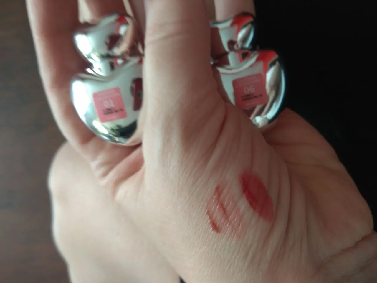 delivery 6 weeks. The bottle is small, giving the impression of a disposable product or a sample in cute packaging. The lipsticks themselves feel weightless on the lips, like water with pigment, with a completely unobtrusive pleasant scent. similar to a tint rather than lipstick. The bottle feels practically empty, but I didn't expect more for that price. . Color 6 - bright enough, matches the photo in the description. In the photo - on the left № 1, on the right № 6(bright).