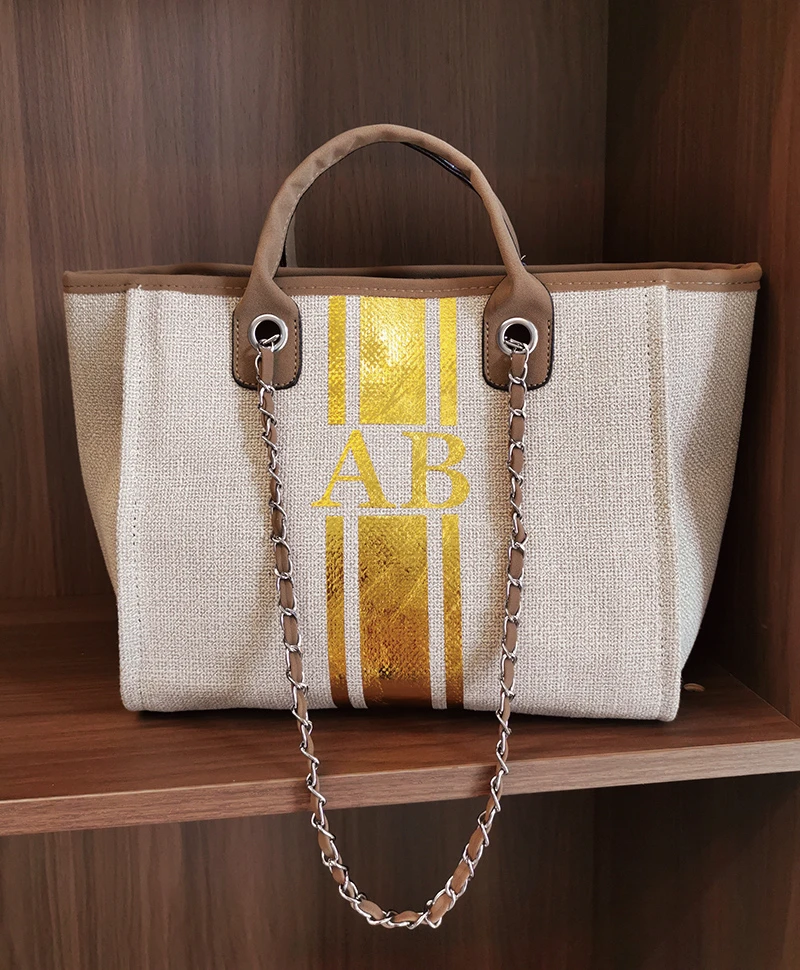 Personalised Golden Capacity 2025 New Customizable Letter Tote Bag For Women Travel, Daily Use Shoulder Bag handbag