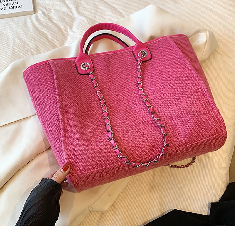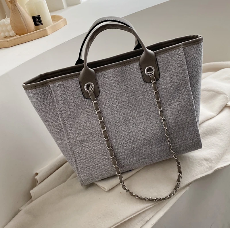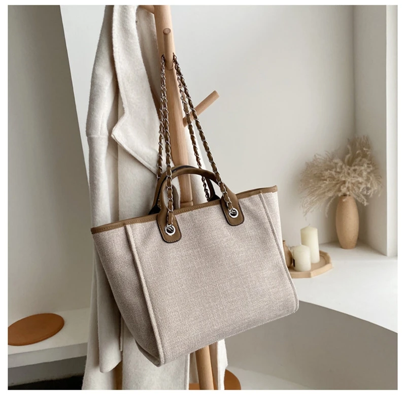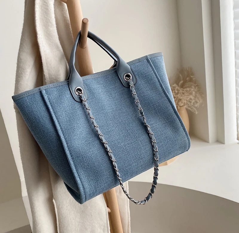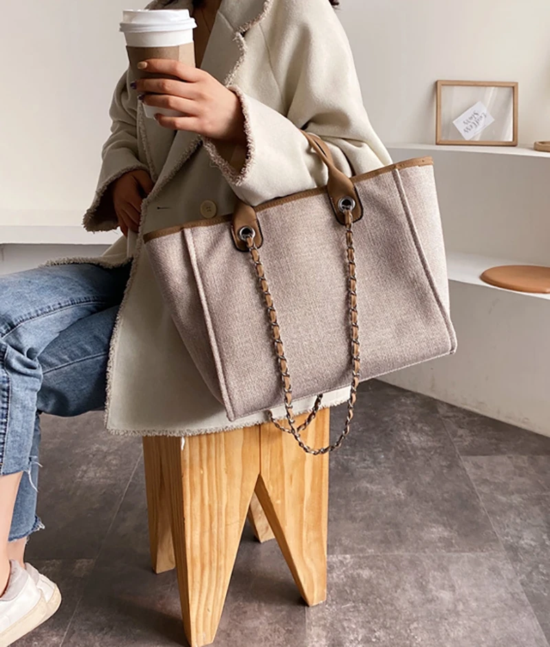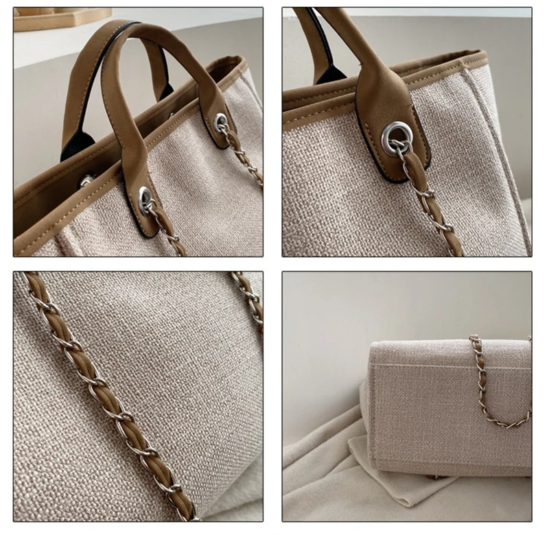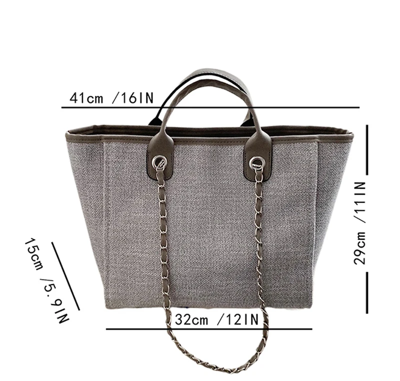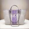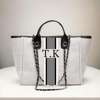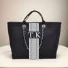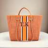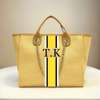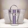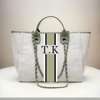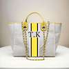 Personalized Monogram Tote Bag Customised Chain Handbag White Stripe Initials Beach Holiday Canvas Tote Women’s Bag
