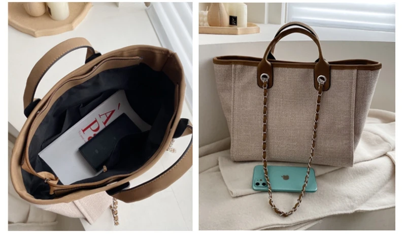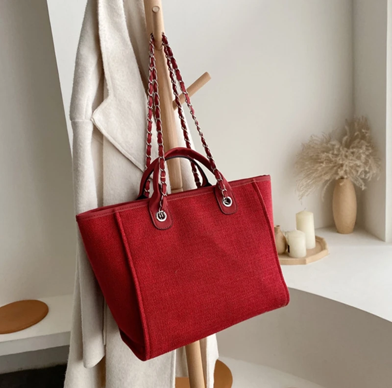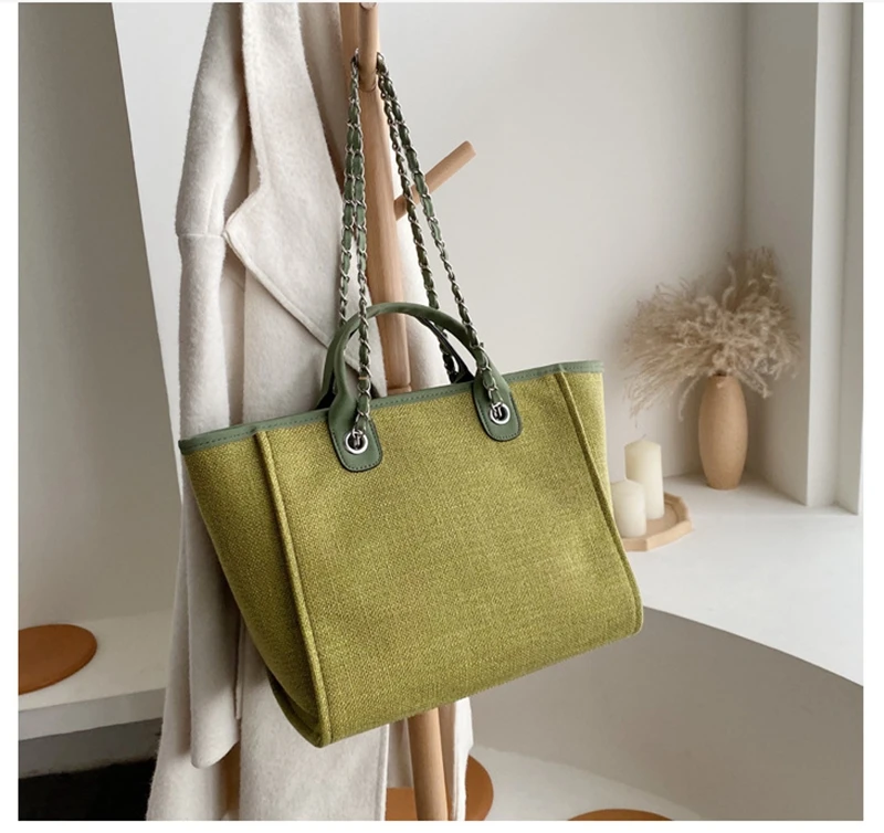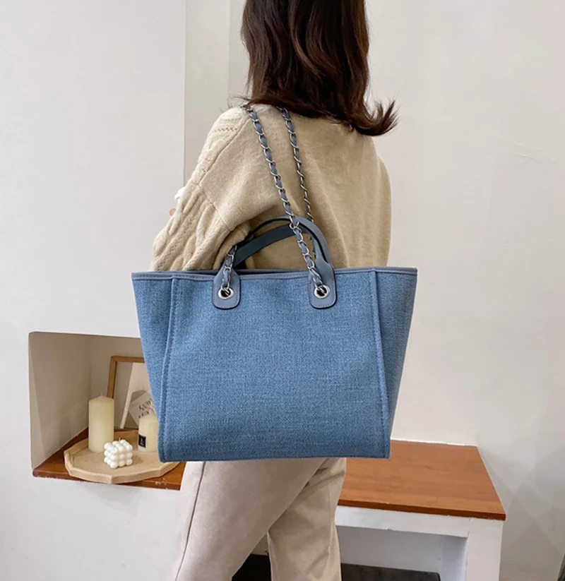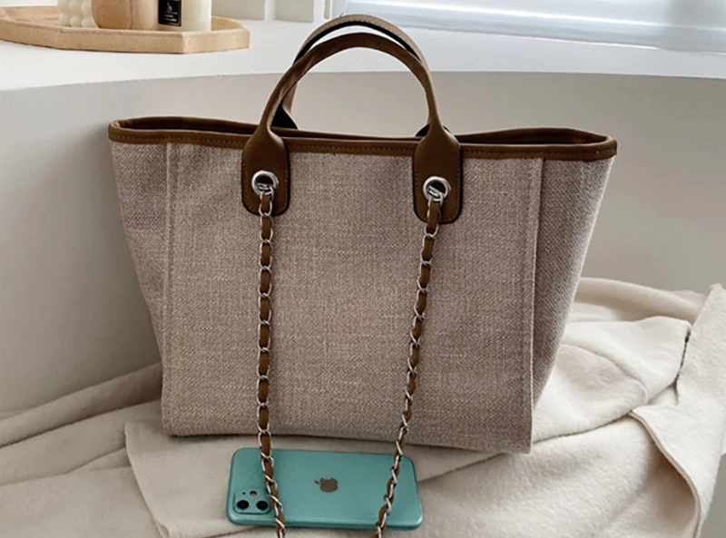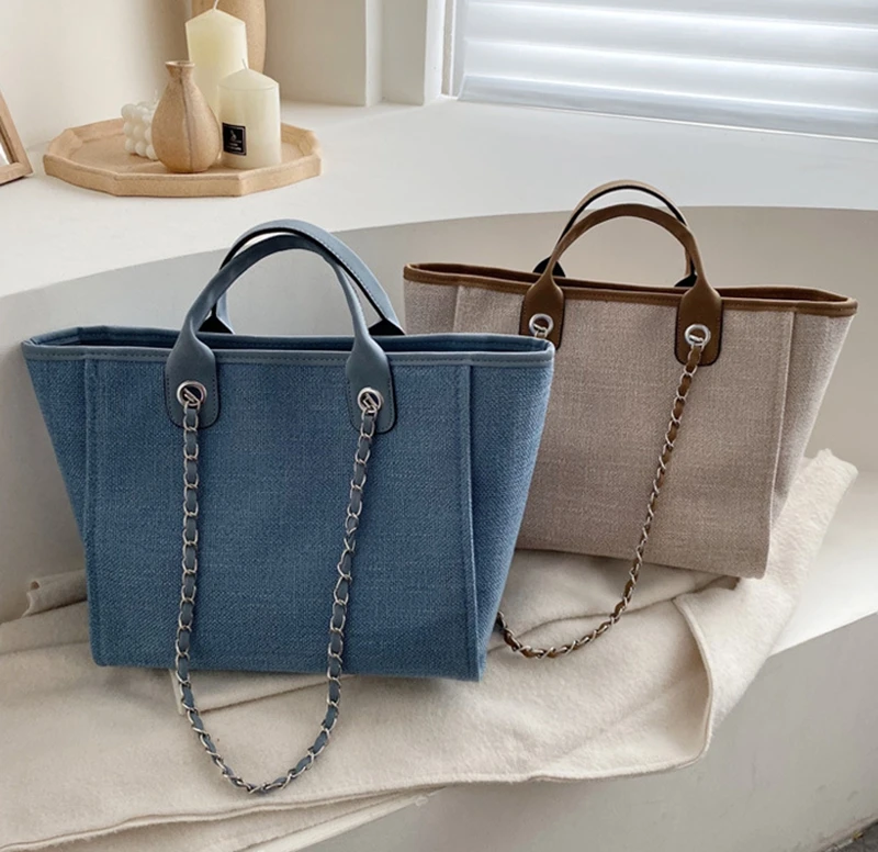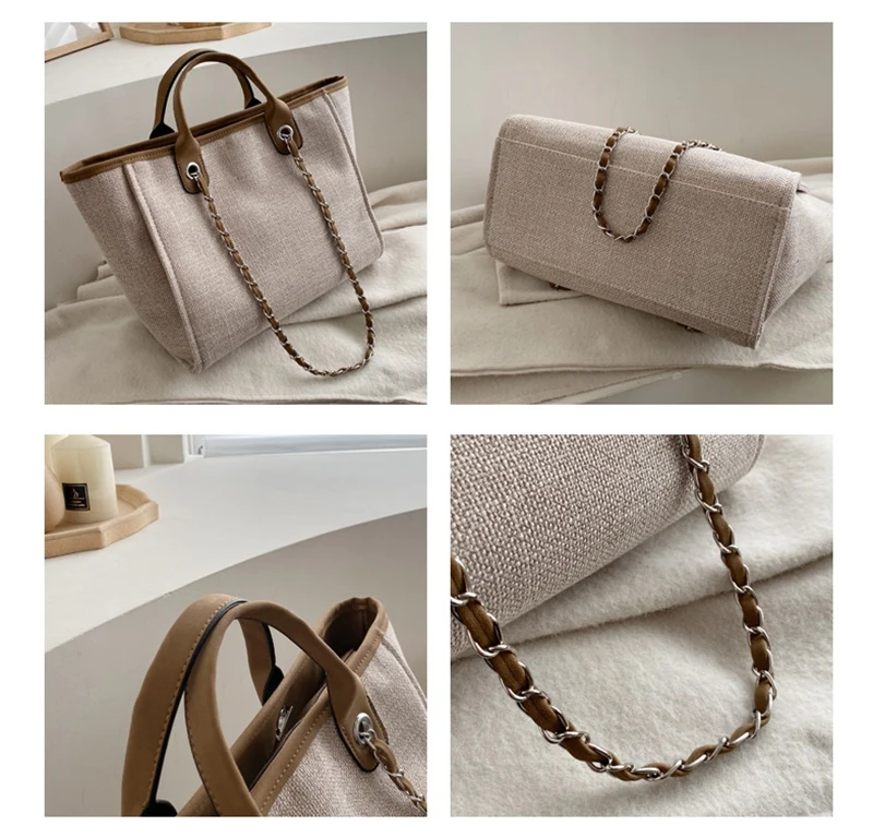 Personalized Monogram Tote Bag Customised Chain Handbag White Stripe Initials Beach Holiday Canvas Tote Women’s Bag