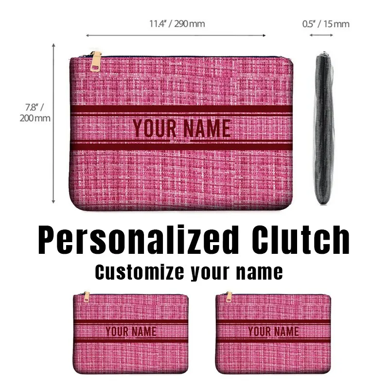 Fashion Solid Customizable Letter Women’s Clutch Classical Portable Elegant Simple Exquisite For Weekend Vacation Wristlet Bag
