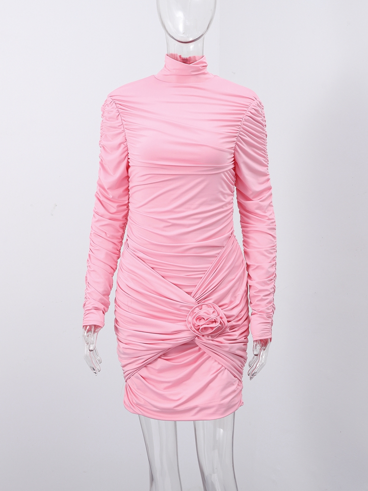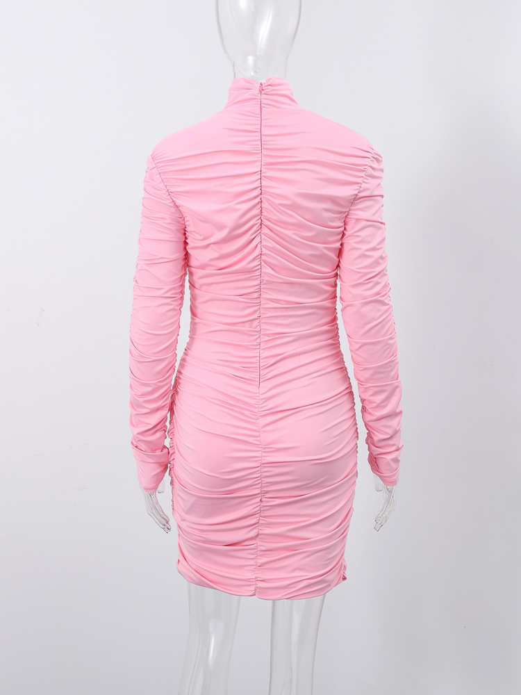 I'm in love with this pink dress! This dressis amazing.the high collar and long sleeves make it suitable for cooler nights, while the short skirt is playful. The fabric looks very soft, and the wrinkle pattern creates a wonderful sense of flow. The size is consistent with the statement, thank you very much for the seller!