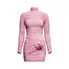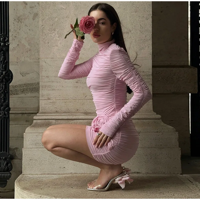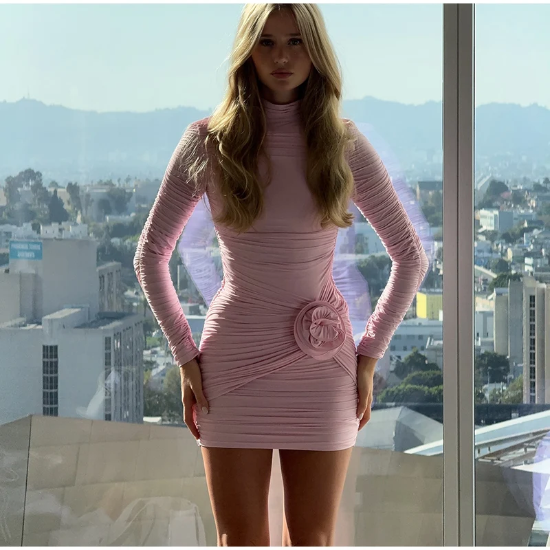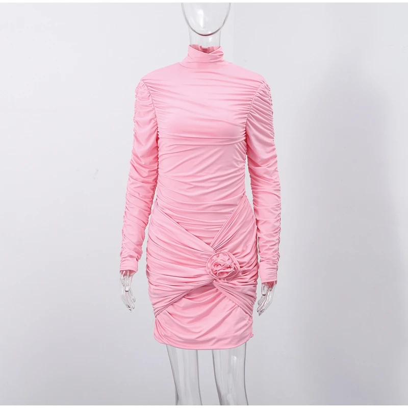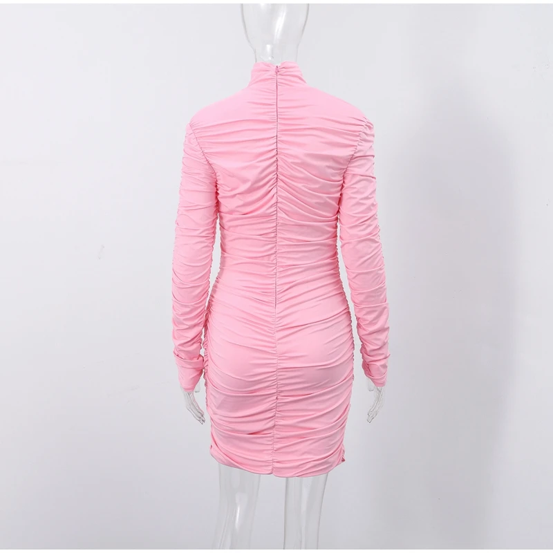 I'm in love with this pink dress! This dressis amazing.the high collar and long sleeves make it suitable for cooler nights, while the short skirt is playful. The fabric looks very soft, and the wrinkle pattern creates a wonderful sense of flow. The size is consistent with the statement, thank you very much for the seller!