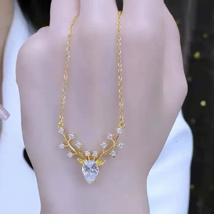 Plum Blossom Deer Antlers Creativity Chokers Necklaces for Women Trendy Rhinestones Deer-head Pendant Necklace Jewelry Gifts