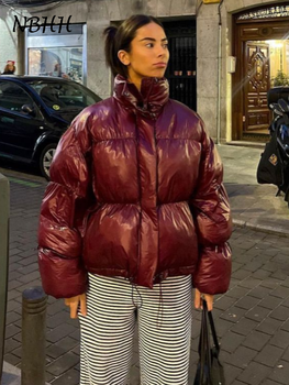 Puffy Warm Women’s Cotton Jacket Loose Stand Collar Zipper Long Sleeve Solid Quilted Coats 2025 Winter Lady Thicken Outwear