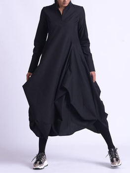 Solid Color Stand Collar A-Line Midi Dress Chinese Style Vintage Long Sleeve Casual Elegant and Pretty Women’s Dresses Vestidos