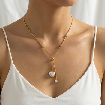 Vintage Stainless Steel Heart Shape Drop Necklaces for Women Simple Metal Geometric Bead Tassel Choker Girls Party Jewelry Gifts