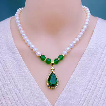 Vintage Elegant Imitation Pearl Choker Necklace for Women Red Green Rhinestones Water Droplet Pendant Necklace Wedding Jewelry
