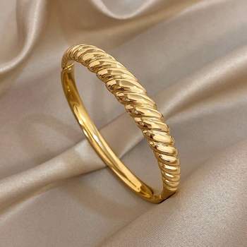 Chunky Gold Plated Stainless Steel Cuff Bangle Bracelets Retro Geometric Twisted Multilayer Wide Bracelet Waterproof Jewelry