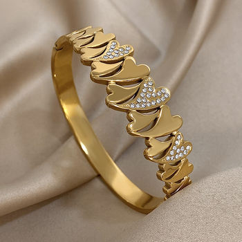 Irregular Rhinestone Heart Stainless Steel Bracelet for Women Stylish Gold Plated Geometric Cuff Bangles Waterproof Jewelry