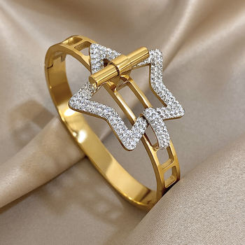 Chic Hollow Micro Inlaid Zircon Star Wide Bracelet Fashion Gold Plated Stainless Steel Cuff Bangle Bracelets Jewelry Gifts