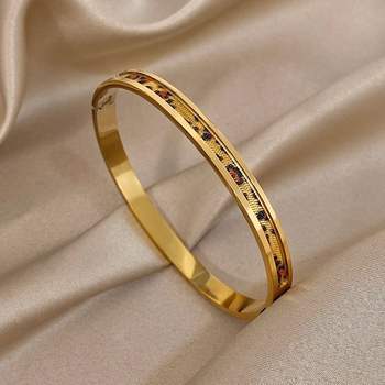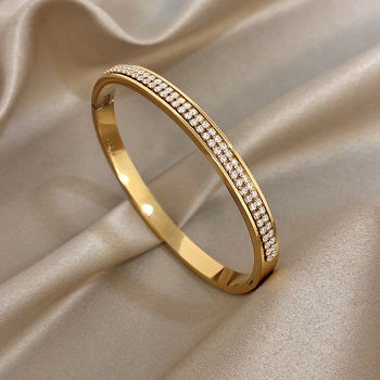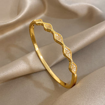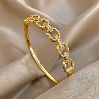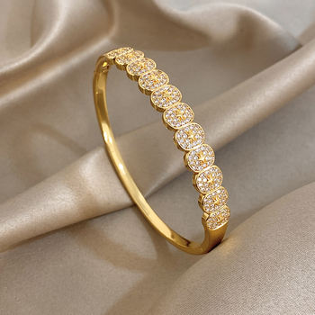 Luxury Micro Inlaid Zircon Bracelet for Women Trendy Gold Plated Stainless Steel Cuff Bangle Bracelets Waterproof Jewelry
