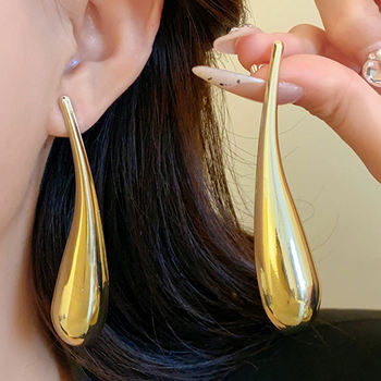 Exaggerate Big Metal Water Droplet Long Earrings for Women Trendy European Golden Geometric Drop Dangle Earrings Party Jewelry