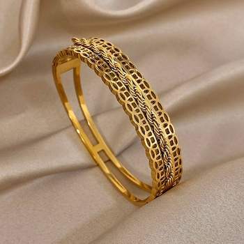 Chunky Layered Stainless Steel Bangle for Women Men Vintage Gold Color Geometric Smooth Cuff Bracelets Waterproof Jewelry