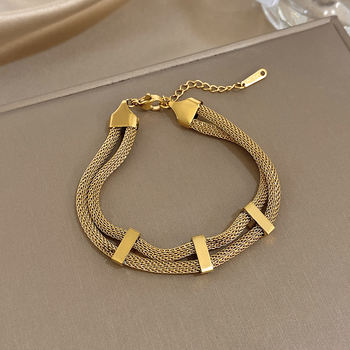 Exquisite Hollow Twisted Link Splicing Bracelet for Women Fashion Gold Silver Color Stainless Steel Bracelets Waterproof Jewelry