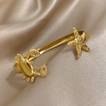Crab Starfish Cuff Bracelet for Women Stylish Gold Plated Stainless Steel Waterproof Bangle Bracelets Beach Jewelry Gifts