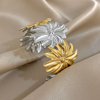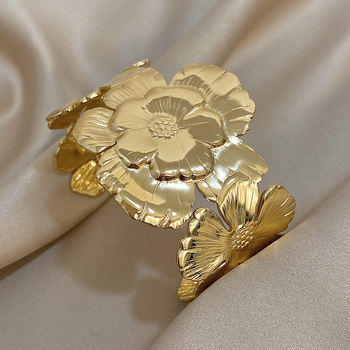 Chunky Big Metal Flower Cuff Bangle Bracelets for Women Fashion Gold Plated Stainless Steel Floral Bracelet Jewelry Gifts