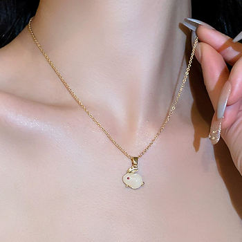Golden Short Chain Acrylic Rabbit Pendant Necklace for Women Cute Chokers Necklaces Girls Gift Fashion Jewelry