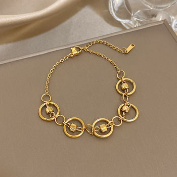 Unique Circle Geometric Textured Beaded Bracelet for Women Elegant Gold Plated Stainless Steel Delicate Bracelets Jewelry Gifts