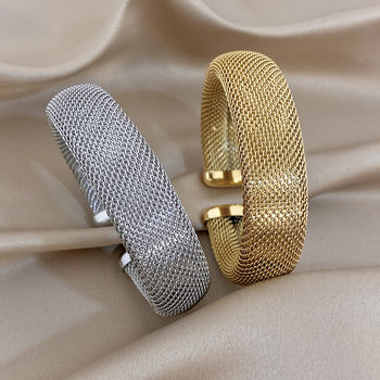 Vintage Hollow Mesh Wide Bracelet for Women Chic Gold Silver Color Stainless Steel Cuff Bangle Bracelets Waterproof Jewelry