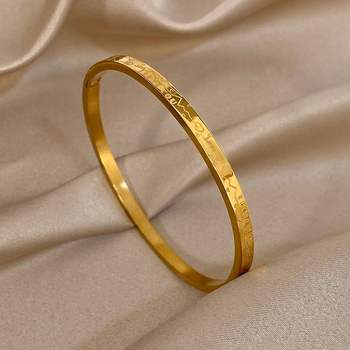 Stainless Steel Gold Plated Smooth Cuff Bangle Bracelets for Women Men Buddhist Rush Temple Wrist Bracelet Waterproof Jewelry
