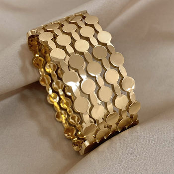 Irregular Geometric Textured Circle Patchwork Bracelet Unique Gold Plated Stainless Steel Wrist Bracelets Waterproof Jewelry