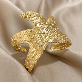 Irregular Hammered Starfish Chunky Bangle Bracelet for Women Men Fashion Stainless Steel Gold Plated Open Bangles Unique Jewelry