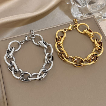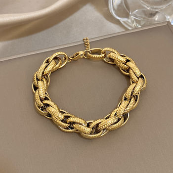 Vintage Hammered Geometric Thick Link Bracelet for Women Men Chunky Gold Color Stainless Steel Bracelets Waterproof Jewelry