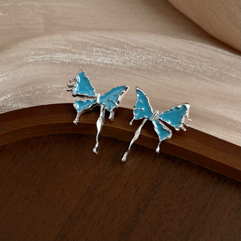 Fashion Butterfly Stud Earrings for Women Girls Cute Sweet Silver Color Blue Enamel Oil Insect Earrings Gifts Jewelry