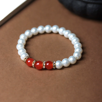 Red Green Acrylic Beaded Beads Bracelets Women Girls Korean Fashion Elegant White Imitation Pearl Bracelet Bangles Sweet Jewelry