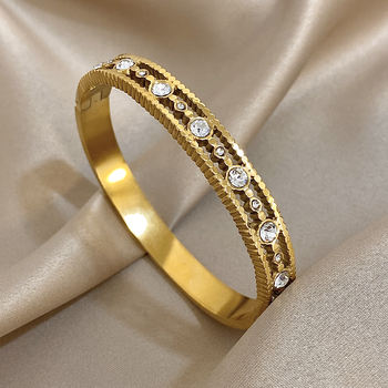 Unique Hollow Inlaid Rhinestone Stainless Steel Bangle Bracelet for Women Fashion Gold Silver Color Bracelets Waterproof Jewelry